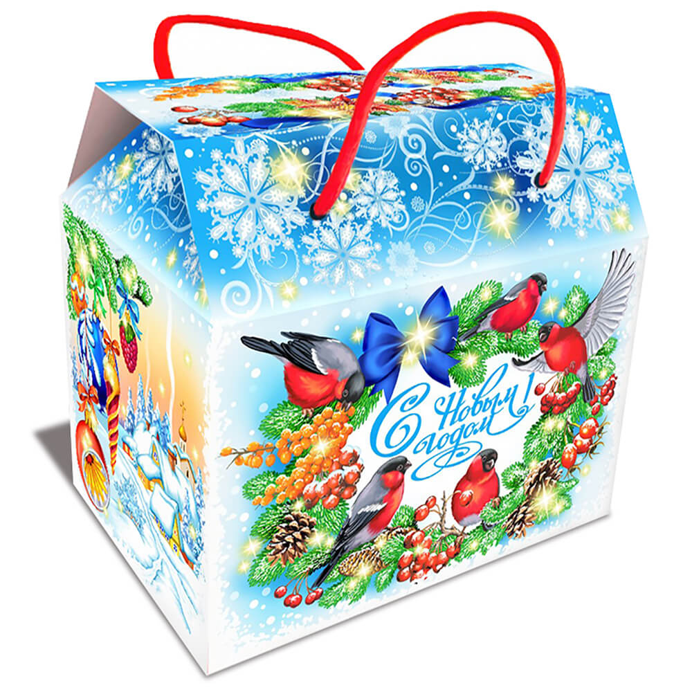 Сладкий подарок в картонной упаковке «Сумочка снегири» 1000г Премиум.